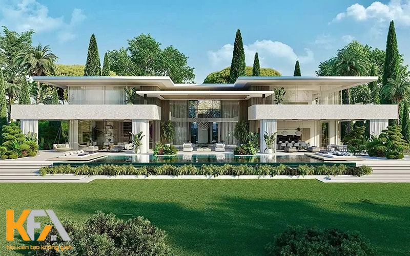 Kiểu hiện đại: Đặc trưng bởi đường nét tối giản, hình khối rõ ràng, sử dụng vật liệu hiện đại như bê tông, kính, kim loại.